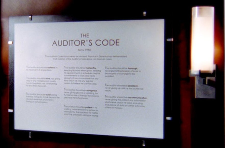 L’auditor rispetta e osserva un codice di condotta nei confronti del suo preclear, conosciuto come il “Codice dell’Auditor”. Il Codice dell’Auditor è costituito da norme che, se seguite esattamente, garantiscono che la persona audita ottenga i migliori risultati possibili. Il Codice dell’Auditor è stato sviluppato attraverso molti anni di osservazione ed è il codice etico che regola la condotta dell’auditor.